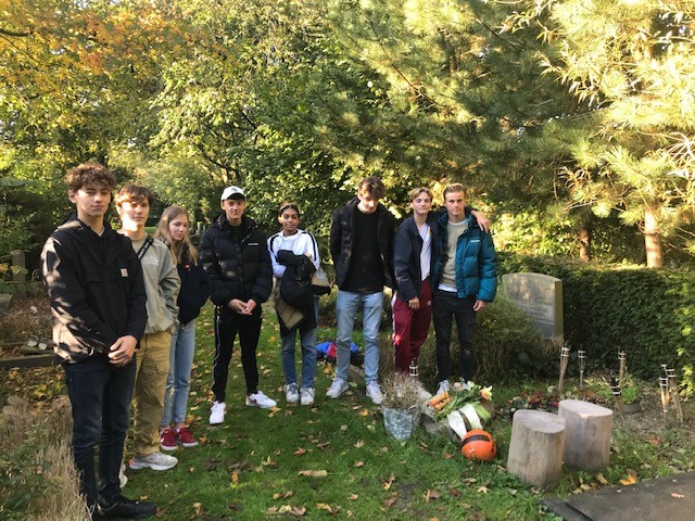 Bij het graf: Rembrandt, Jonathan, Rosa, Mateo, Liz, Daniël, Finn, Arthur. Sander en Juno konden er niet bij zijn